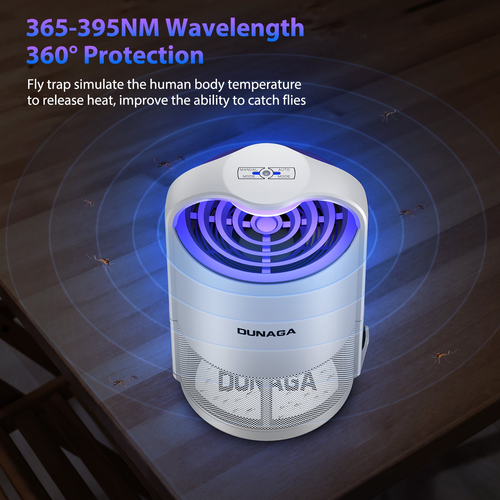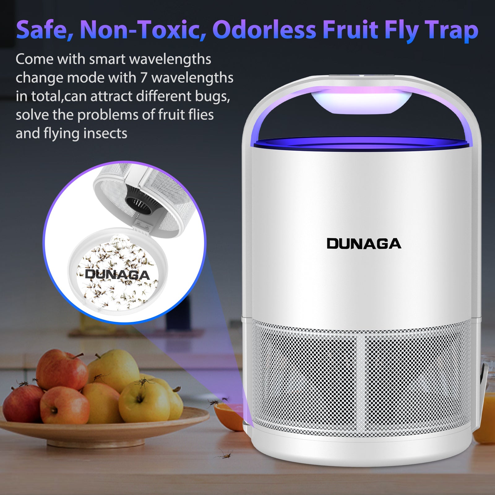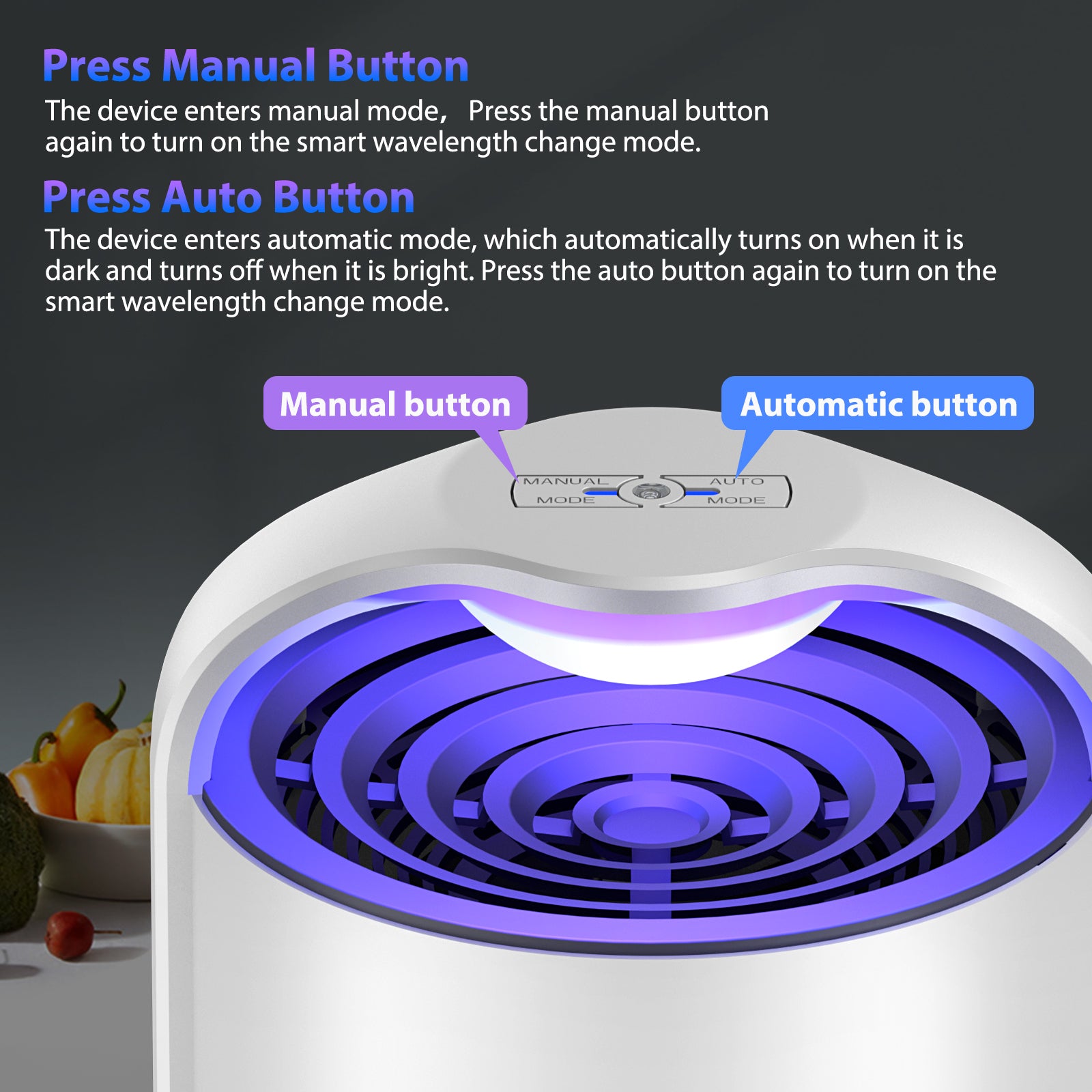 Fruit fly trap for indoor, both manual and automatic modes have smart wavelengths change function with 7 wavelengths in total, It will automatically switch every 15 minutes, can attract different bugs